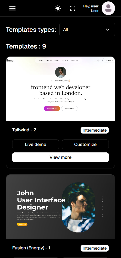 Whether you prefer a clean and minimal look, modern animations, or advanced 3D effects, our templates are categorized into Basic, Intermediate, and Advanced levels, with both free and premium options available.